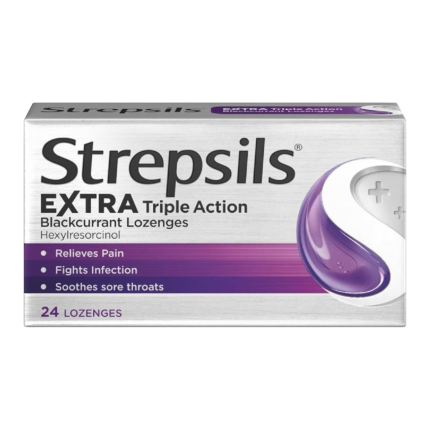 Strepsils Extra Triple Action – Blackcurrant Throat Lozenges, 24 Count